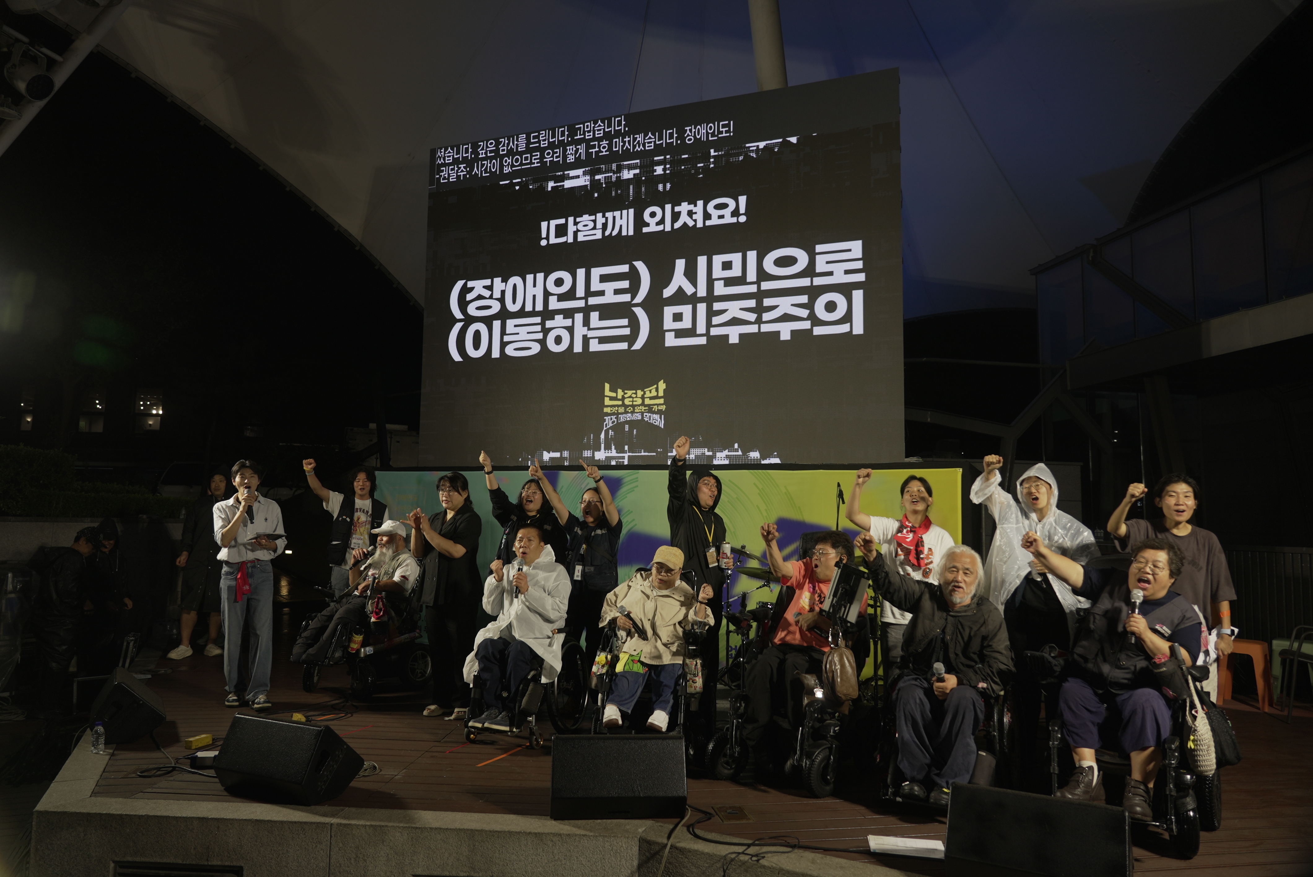 ์ ์ฅ์ฐ์ ๋ฌด๋ ใ๋ํญ๋ก์ฌ๋๋ค: ๋์ฅํใ์ ์ฅ์ ์ธ๊ณผ ๋น์ฅ์ ์ธ, ํ๋๊ฐ์ ์ฐ๋์๋ฏผ์ด ๊ฒฝ๊ณ๋ฅผ ํ๋ฌผ๊ณ ์ ๋๋ ๋นํธ ์์ ์๋ก์ ๋ชธ์ ๋งก๊ธฐ๋ฉฐ ์ถค์ถ๋ ๊ด์ฅ์ผ๋ก ๋ง๋ค์์ด์. ๋น๊ฐ ๋ด๋ ธ์์๋ ๋ถ๊ตฌํ๊ณ , ๋ง์ ๋ถ๋ค์ ๋จ๊ฑฐ์ด ์ฐ๋์ ์ง์ง ์์ ๋ฌด๋๋ฅผ ์ฑํฉ๋ฆฌ์ ๋ง์น ์ ์์์ฃ . ํจ๊ปํด ์ฃผ์ ๋ชจ๋ ๋ถ๋ค๊ป ๊ฐ์ฌ๋๋ ค์. ์ฌ๋ฌ๋ถ์ด ๋ณด๋ด์ฃผ์ ์ฐ๋์ ์ง์ง์ ๋ง์์ ๋์น์ง ์๊ณ , ์ฅ์ ์ธ๊ถ๋ฆฌ ์์ทจ๋ฅผ ์ํด ํฌ์์ ํ์ผ๋ก ์ผ์๊ฒ์.
